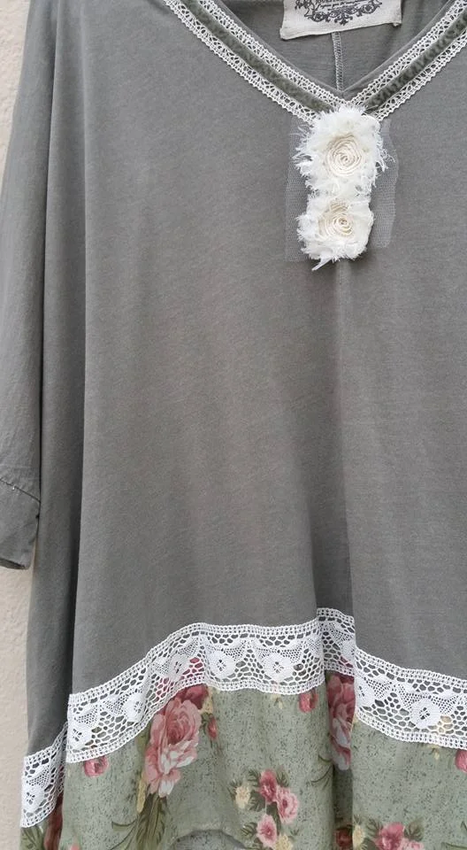 Romantica vintage grey and gold silk and cream lace top . Size 8/10 £89.00